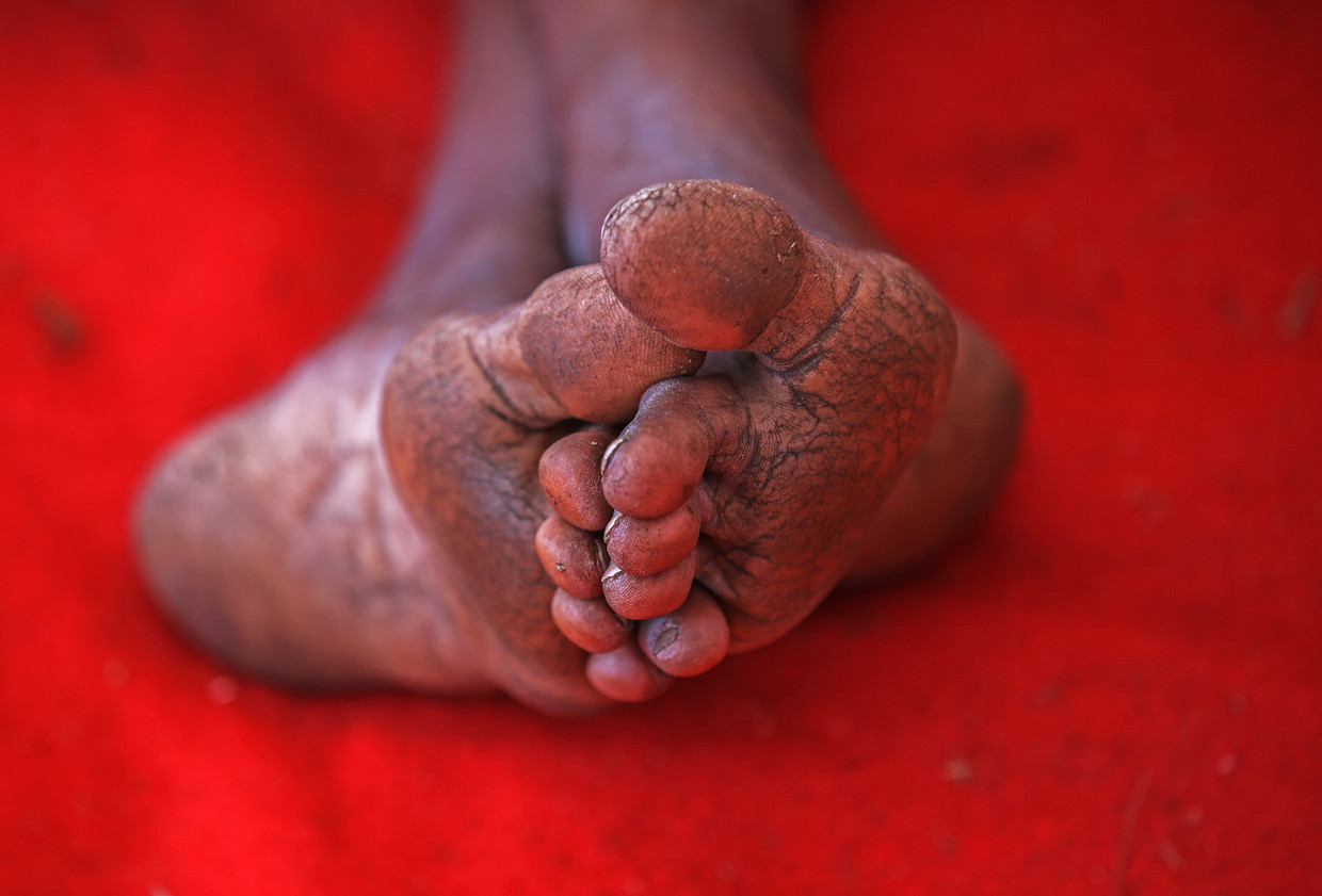 Van een foto die juist al dat uiterlijk vertoon, de visuele uitbundigheid, buitensluit, kan een louterende werking uitgaan. Dat is het geval bij de foto van wat meestal ongezien blijft: de voetzolen van een boerenvrouw die deze week in Mumbai demonstreerde. Ze lag of zat, vermoedelijk moe van een lange dag, op de grond in een grote tent toen de fotograaf haar voeten zag. Voetzolen met een geschiedenis. Met eelt, beschadigingen en littekens: een landkaart van een hard leven vol ontberingen. Zonder schoeisel om haar te beschermen tegen stekels, scherpe stenen of slangenbeten.